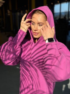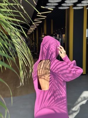 Explorati noul hanorac Lady Mauve pentru fitness: 100% bumbac, cu spatele gol si maneca tip clopot, decorat cu pietricele. Perfect pentru a adauga un strop de stil antrenamentelor dvs sportive, garantand confort si performanta.