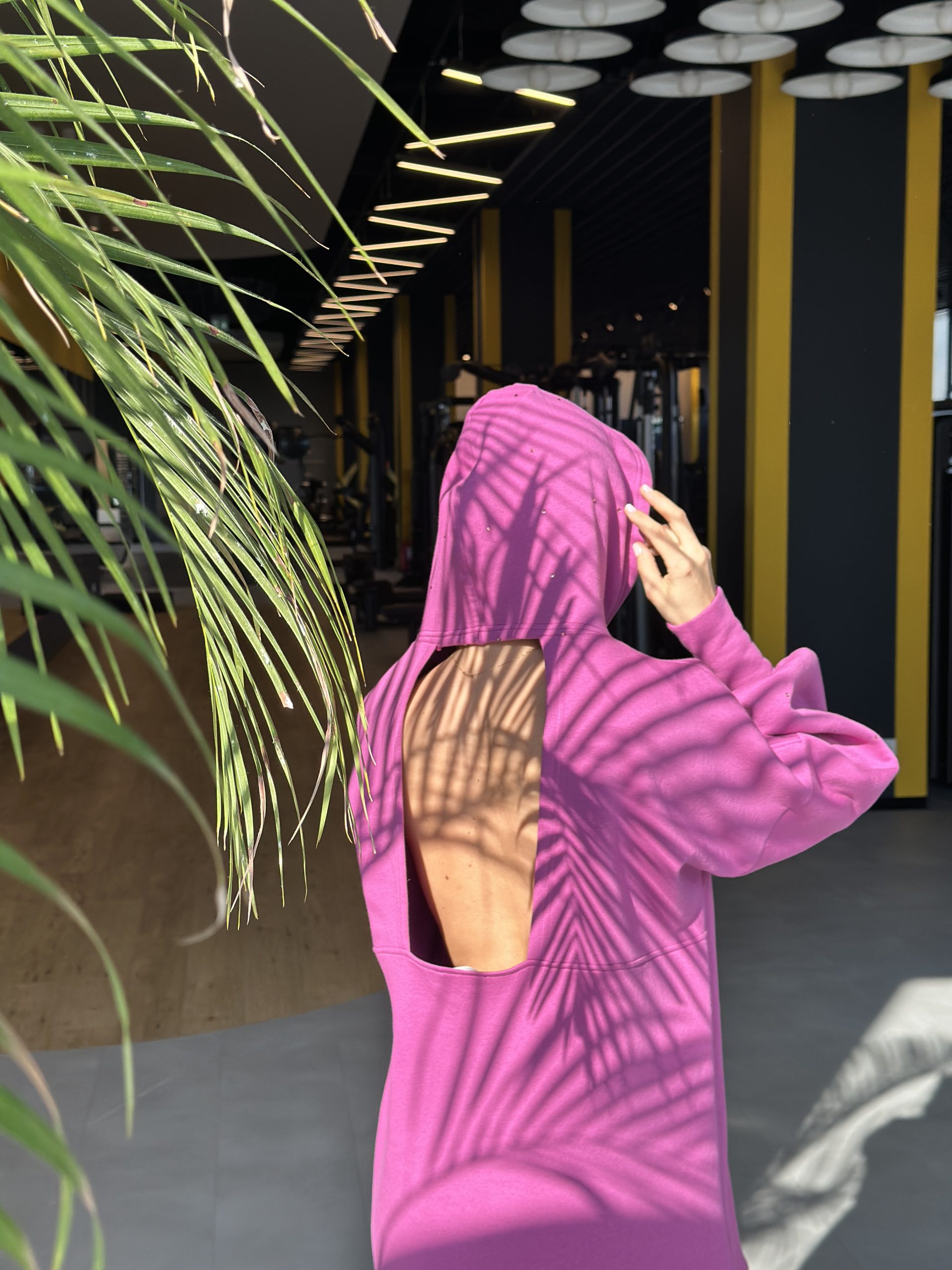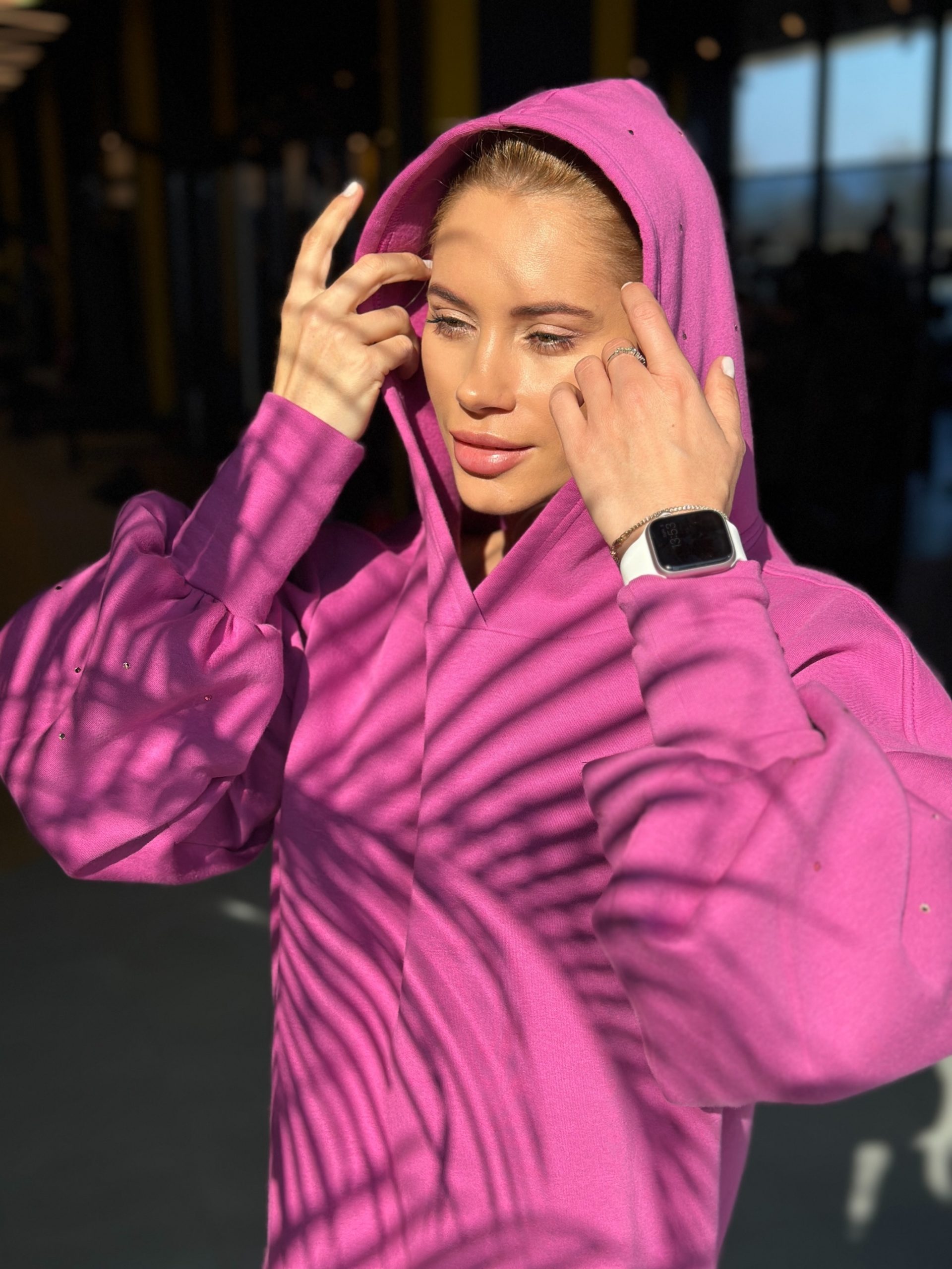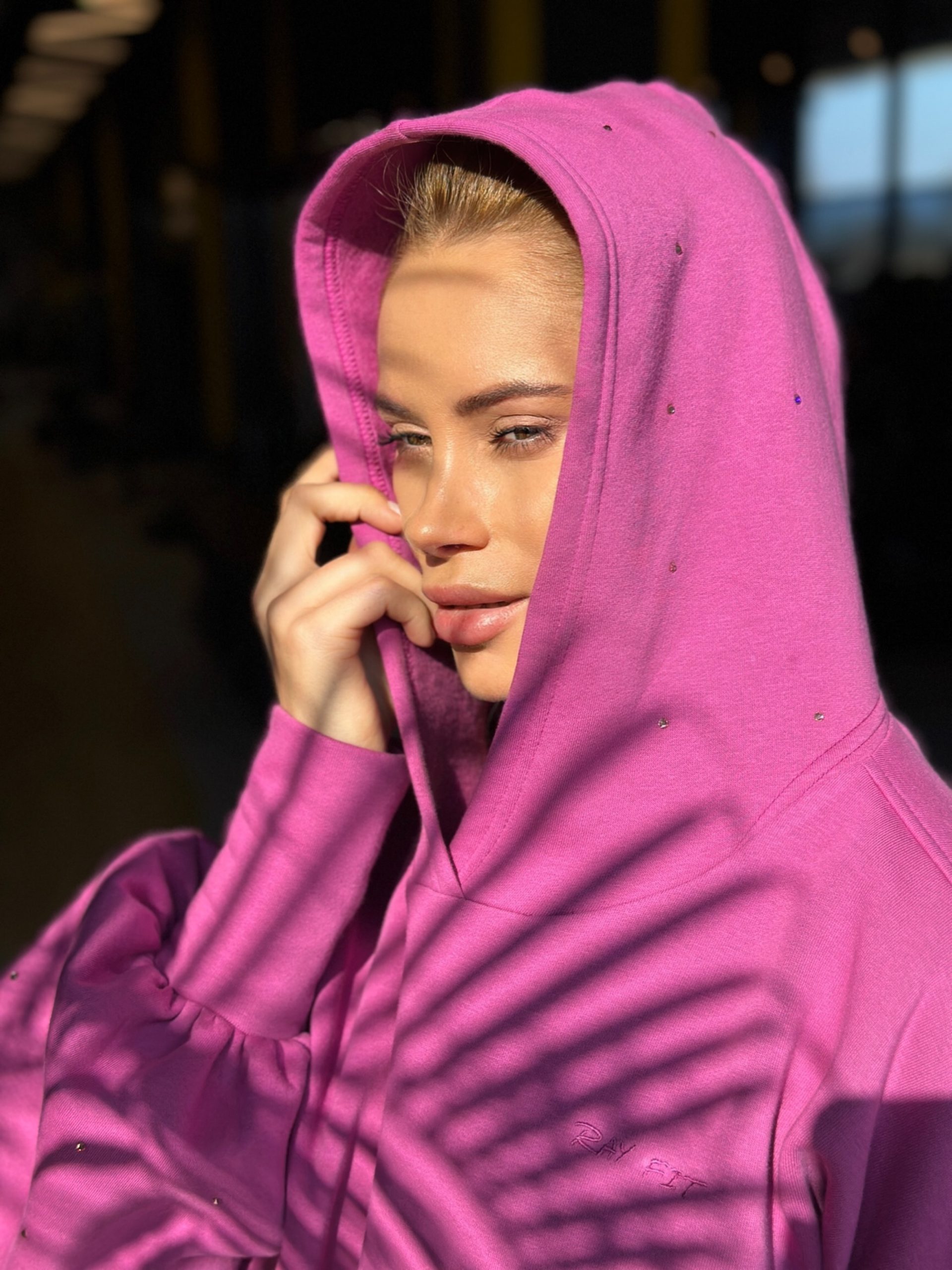 Hanorac Lady Mauve pentru fitness decorat cu pietricele, cu spatele gol si maneca clopot - Confort si Stil