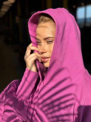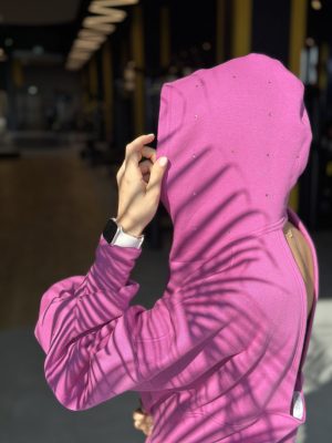 Descopera noul hanorac decorat cu pietricele Lady Mauve, ideal pentru fitness si sport! Realizat din bumbac 100%, cu un design inovativ, spatele gol si maneca tip clopot decorat, acest hanorac combina confortul cu stilul. Perfect pentru antrenamentele tale, adauga o nota de eleganta rutinei tale sportive!