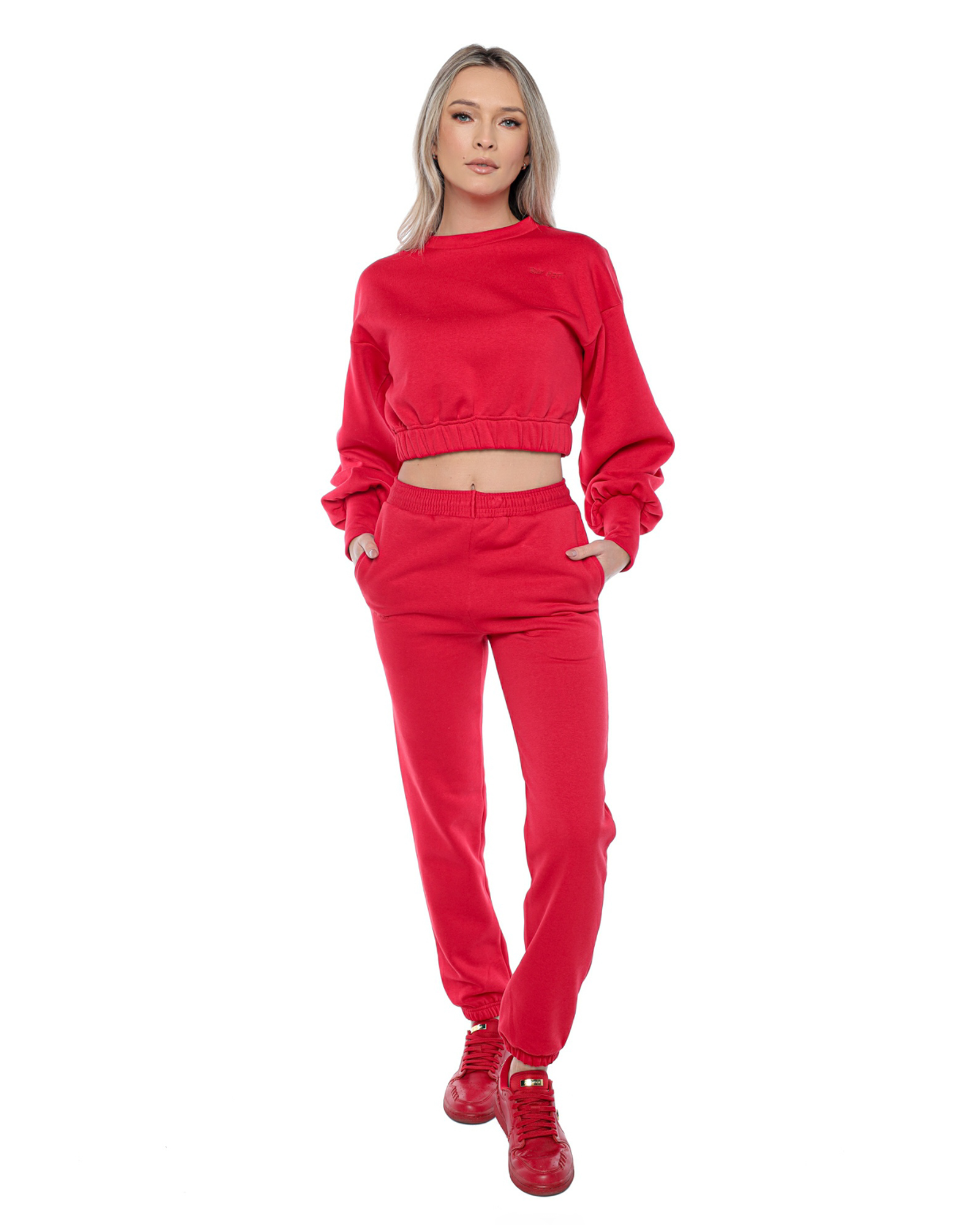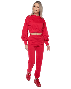 Treningul RAYFIT Lady Red din bumbac 100% ofera confort si stil. Bluza cu elastic si pantaloni evazati asigura libertate de miscare si un look modern in timpul activitatilor sportive. Ideal pentru toate tipurile de exercitii!